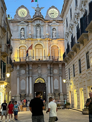 Trapanin sataman suojamuuuri oli iso, se piti aallokon poissa ankkurissa. Ajettiin kumpparilla yhteen marinoista ja kysyttiin lupa saada pitää venettä pari tuntia siellä. Käveltiin keskustaan ja takaisin.