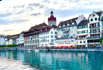 Junan vaihto Luzerniin. Luzernista olin varannut jälleen halvimman hotellin Ibis Budget aika läheltä asemaa. Illalla käytiin kävelyllä ja syömässä fondyy.